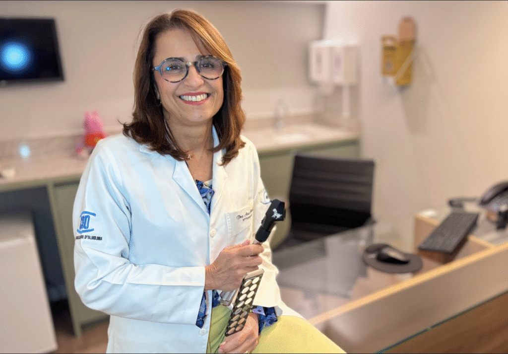 Tecnologia de ponta para exames rápidos e confortáveis. A Dra. Ana Chimeli utiliza o Eyer, um retinógrafo portátil de alta precisão que permite a captura de imagens da retina com agilidade, mesmo em bebês e crianças pequenas. Ideal para diagnósticos precoces de alterações no fundo do olho, com muito mais conforto e segurança para os pequenos.